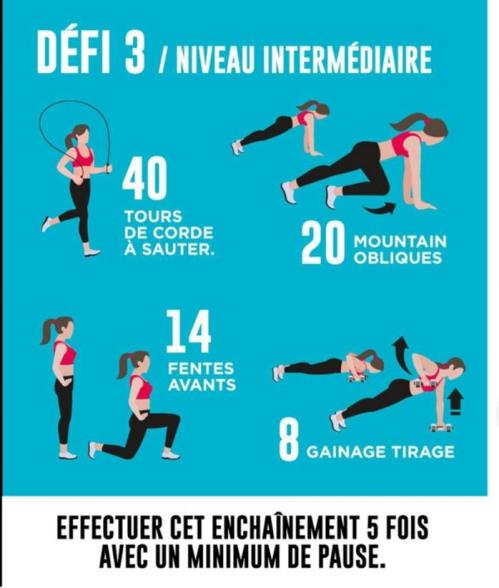 De plus en plus difficile, voici l'affiche 3 du niveau intermédiare, bonne gym!